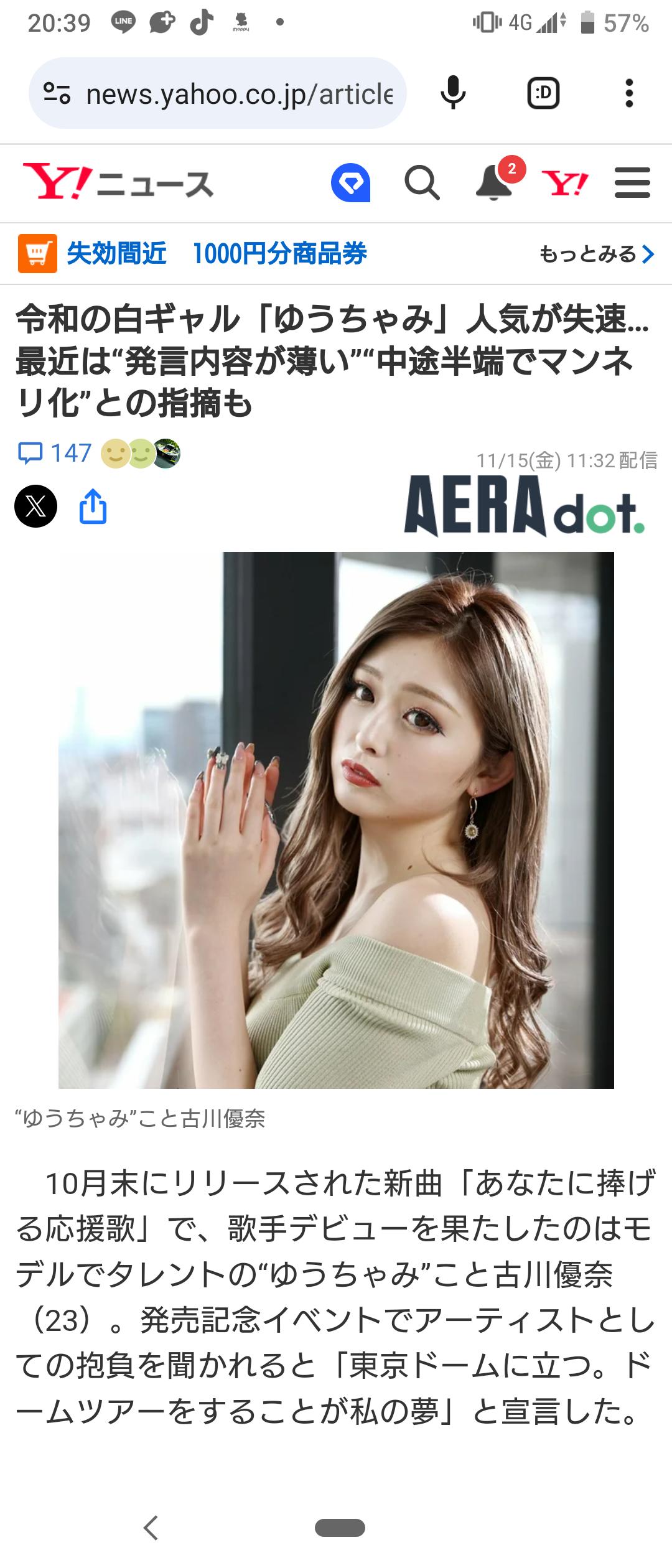 【悲報】令和の白ギャル代表・ゆうちゃみ、人気低下で終了