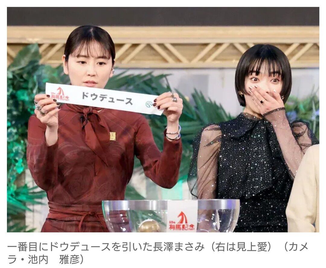 長澤まさみ&見上愛、『有馬記念』の公開枠順抽選会に参加 ドウデュースがいきなり1枠2番引く