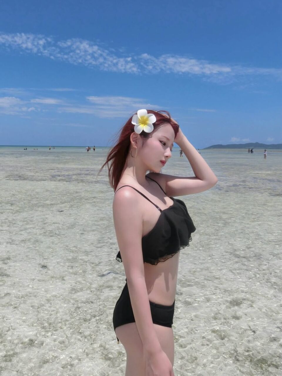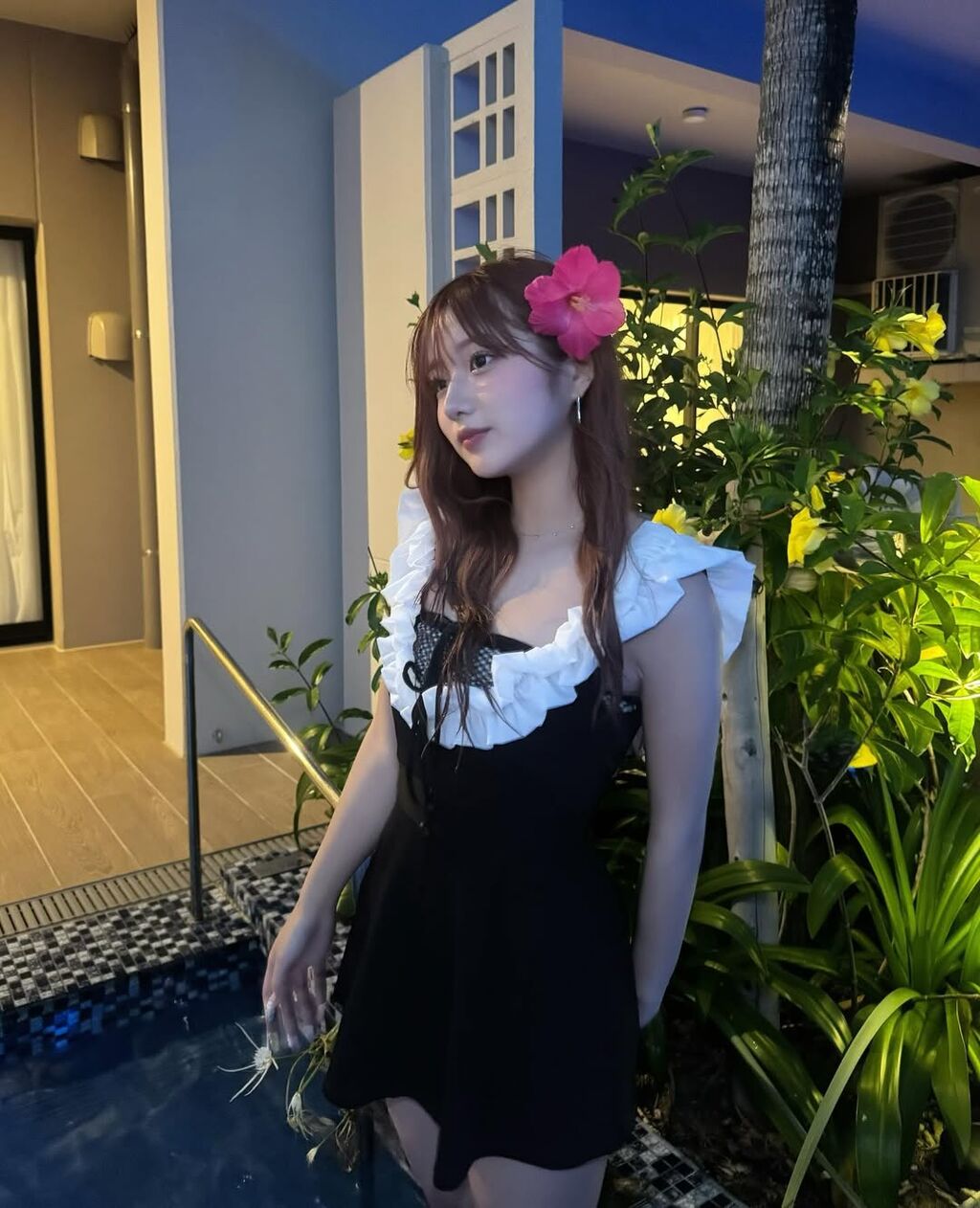 インスタグラムに投稿された写真では、白いフリルがデザインされた黒いワンピースタイプの水着を着用。ハイビスカスを髪に飾り、ポーズをきめていた。