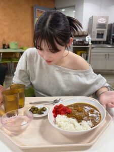 【画像】JCさん、肩出しして学食みたいなカレーを食べてしまう…新着!!