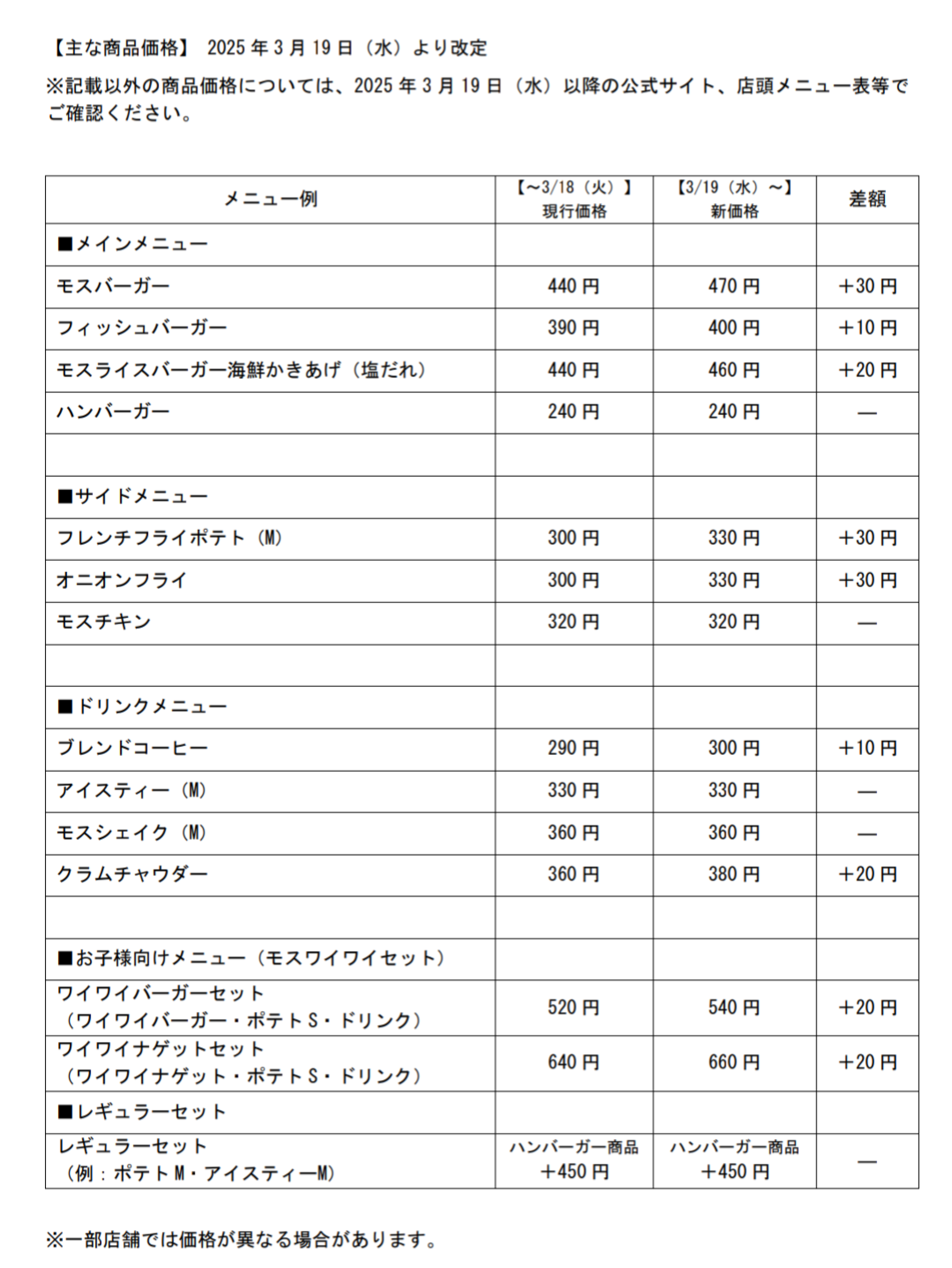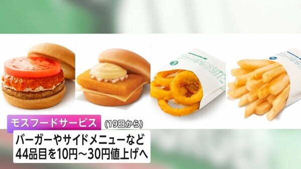 「モスバーガー」が44品目の値上げを発表 値上げ幅は10円~30円 人気商品の「モスバーガー」は440円から470円に #FNNプライムオンライン https://t.co/bm27YEfrcF