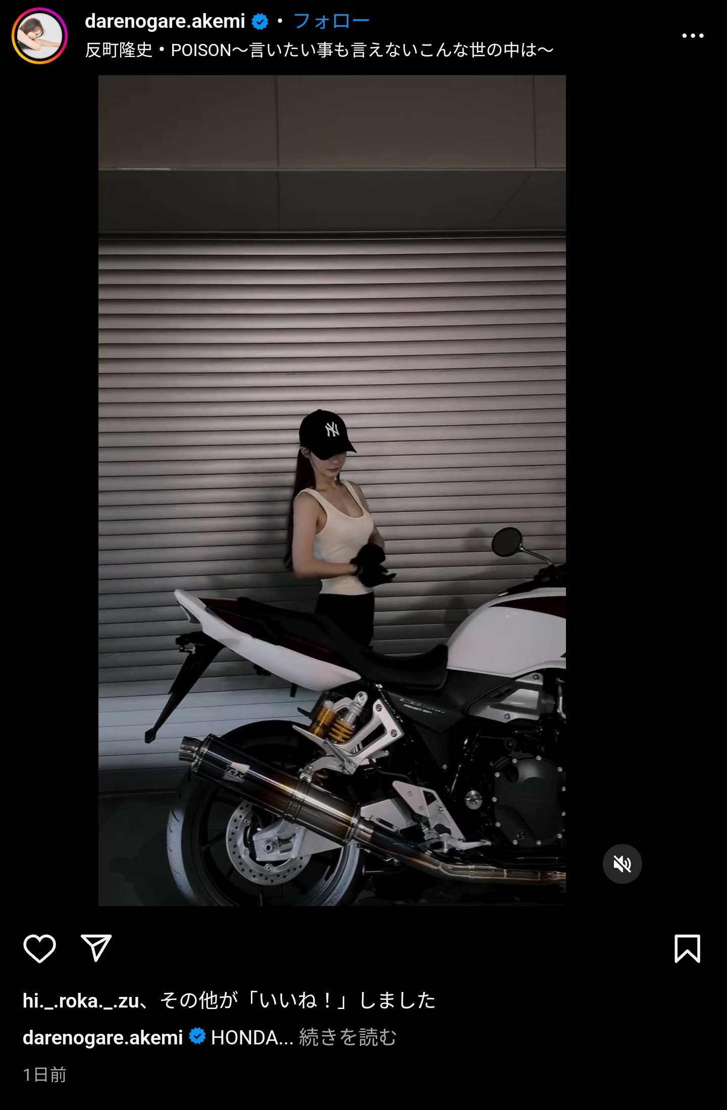【画像】ダレノガレ明美さんの大型バイク、かっこいいwwwwwwwwwwwwwww