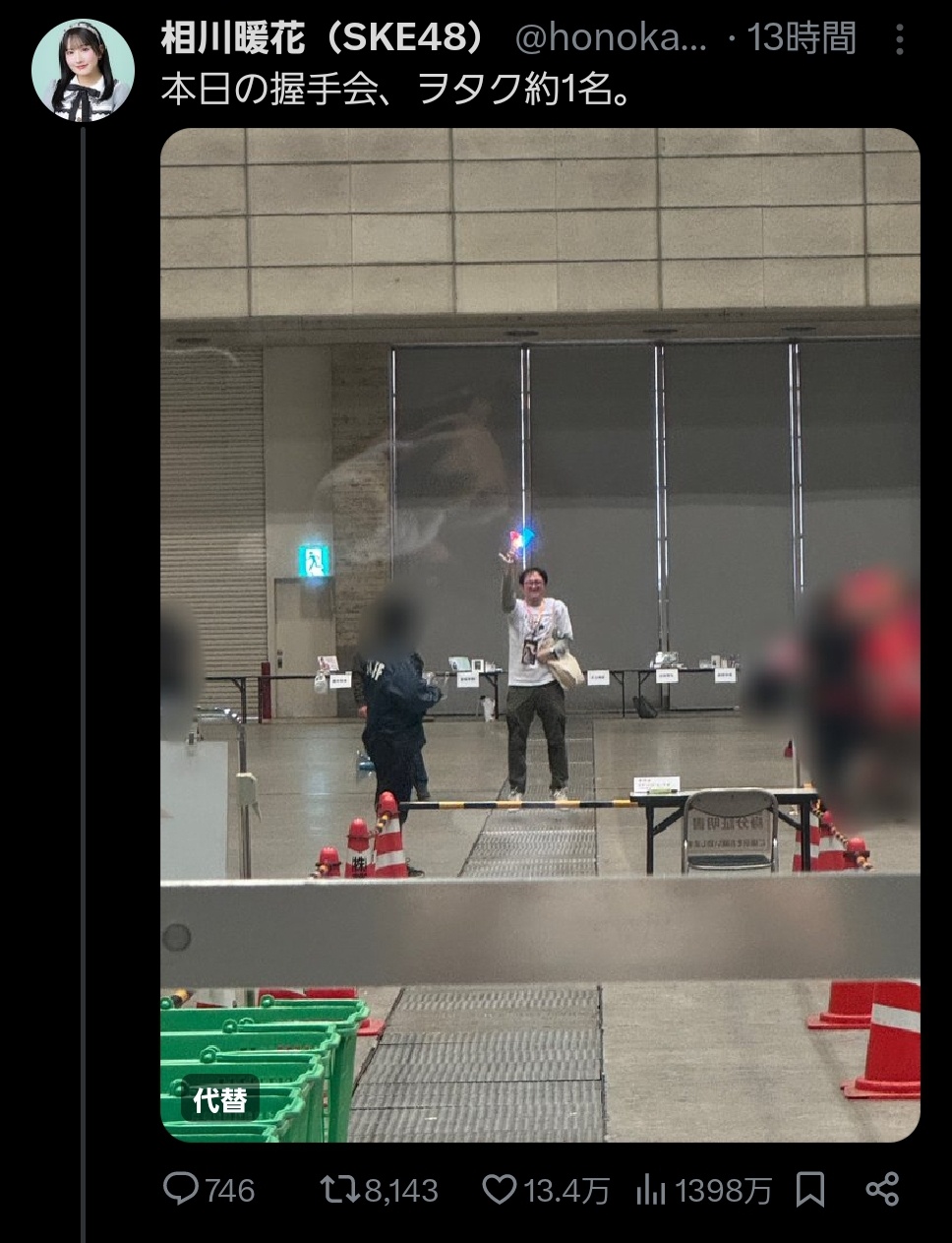 【悲報】SKE48「本日の握手会、ヲタク約1名。」→𝕏で13万いいねwwwwwwwwwwwwwwwwwwwwwwwwwwwwww