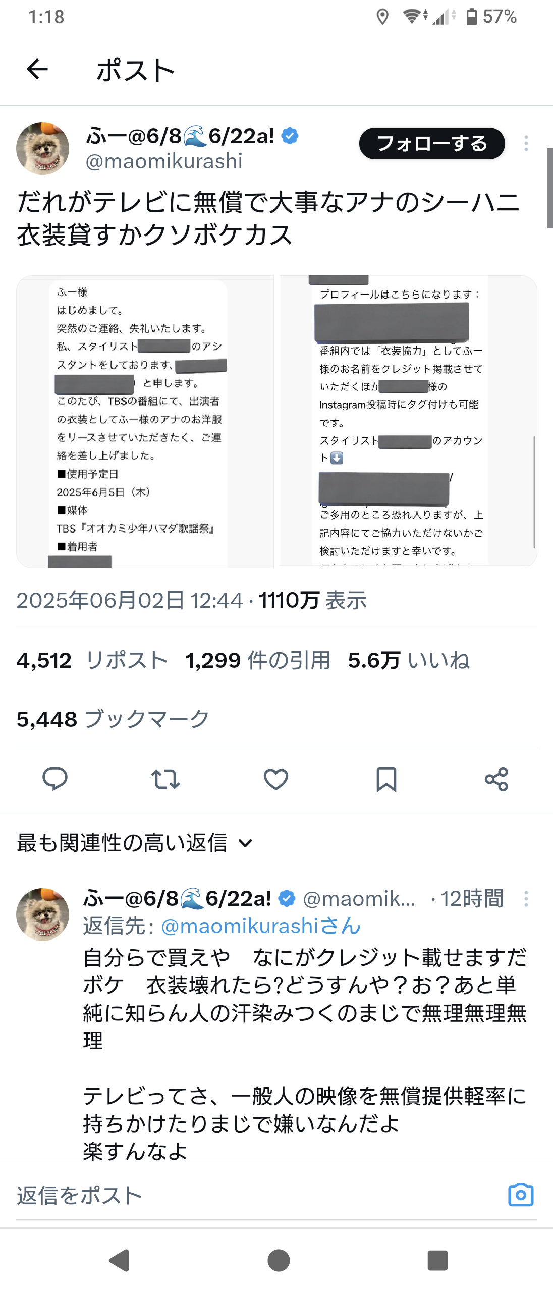TBS「衣装無料で貸してや、テレビのクレジットに載せてやるから。あとインスタにタグ付けしてええで」