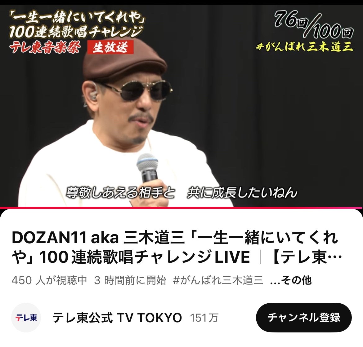 【悲報】三木道三さん、一生一緒にいてくれやを100回連続歌わされた挙句変なアイドルに囲まれる