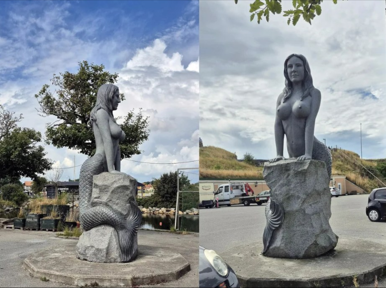 【画像】人魚の銅像🧜‍♀、「デカパイでいやらしい」と非難され、文化遺産なのに撤去。