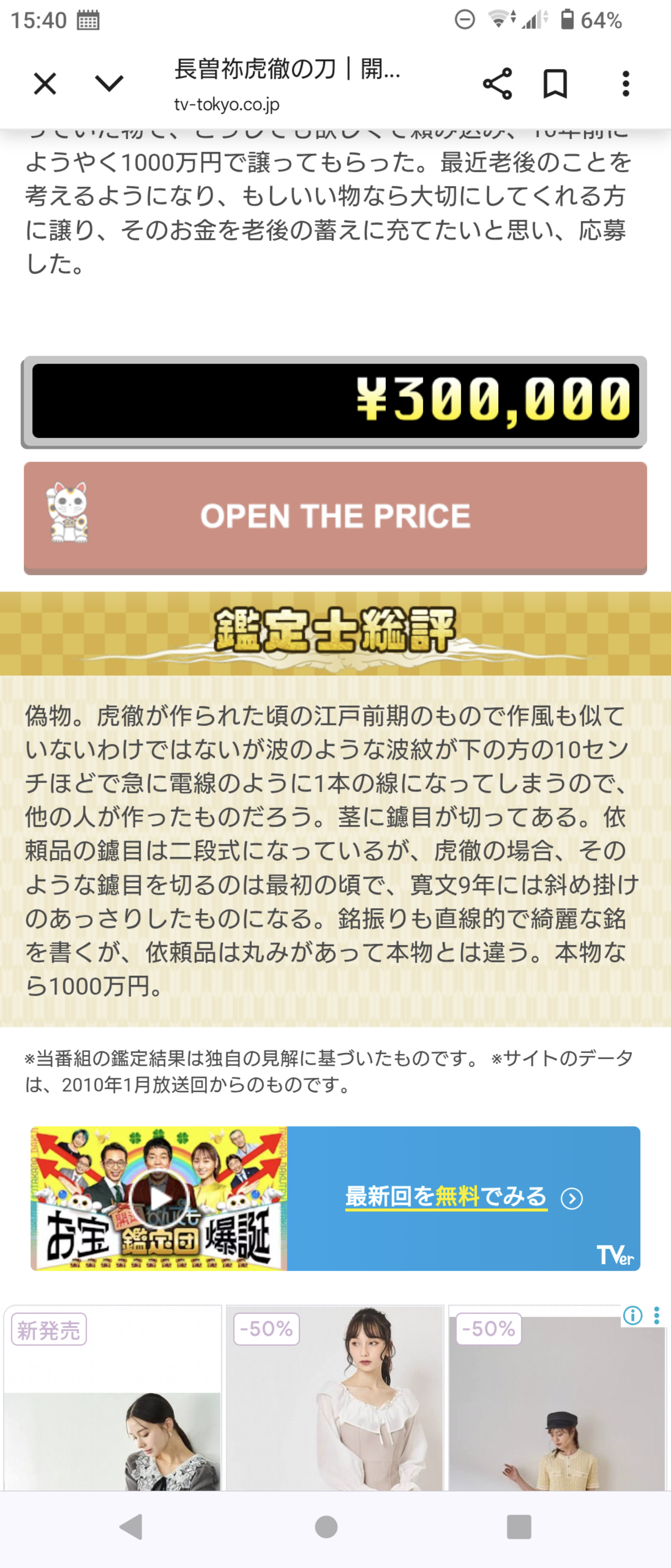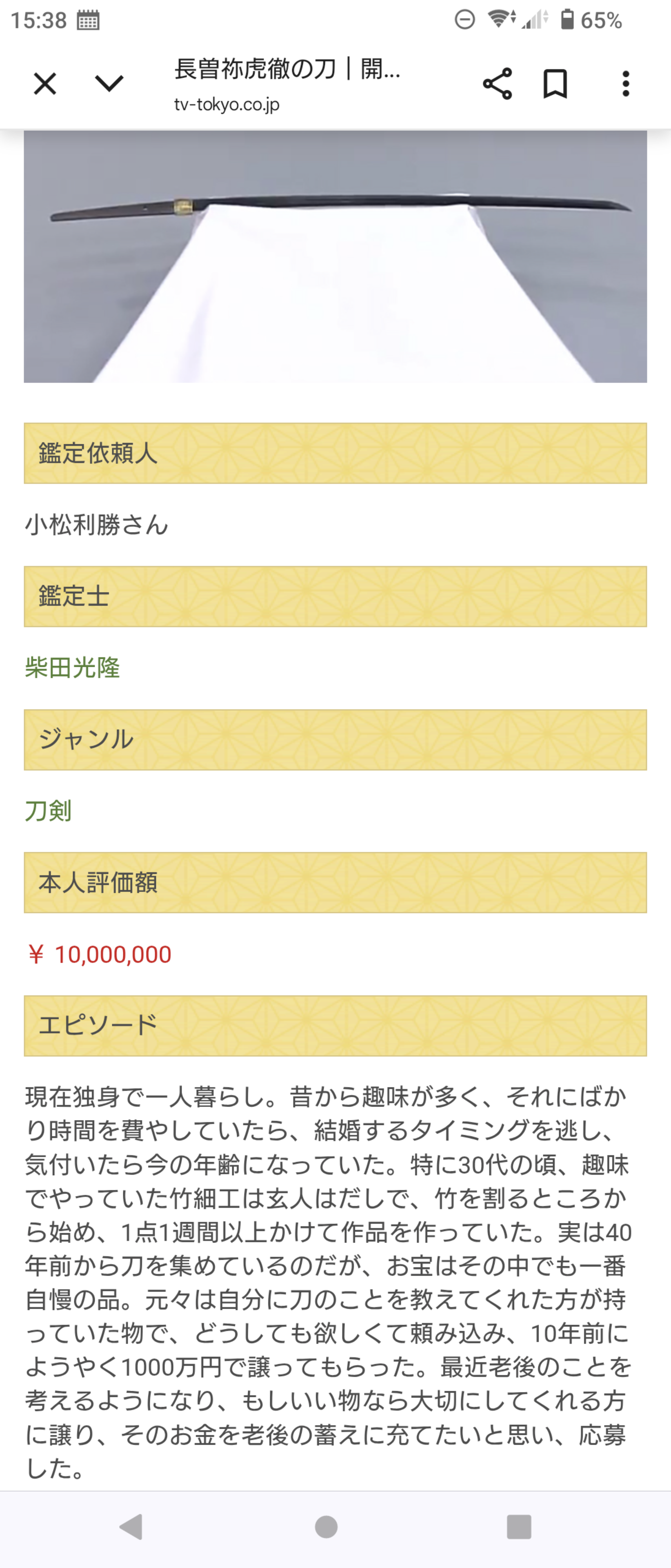 独身「結婚せずためた1000万円で買った名刀!!お宝鑑定団に見せたるで」←オープンtheプライスぅw