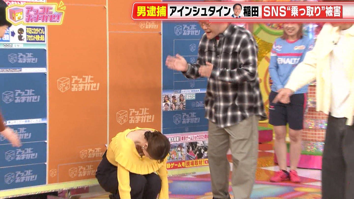 動揺した山形アナは、しゃがみ込みながら反省。何度も頭を下げて、「本当にごめんなさい」と稲田に対して謝罪を繰り返した。