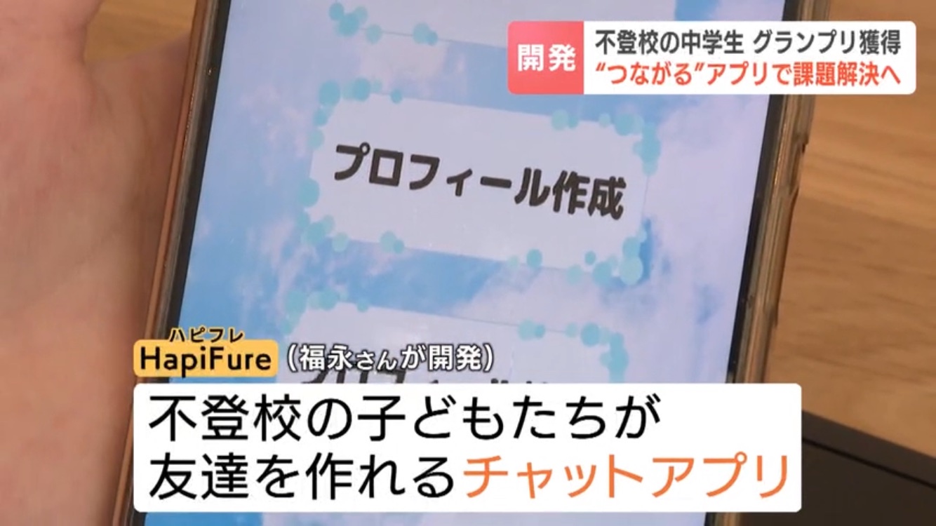 【報道情報】不登校の経験から生まれた希望のアプリ 開発した14歳が全国大会でグランプリ受賞 学校に行けない孤独感解消(HBC北海道放送・10/09)https://t.co/r2Ncx94lfd