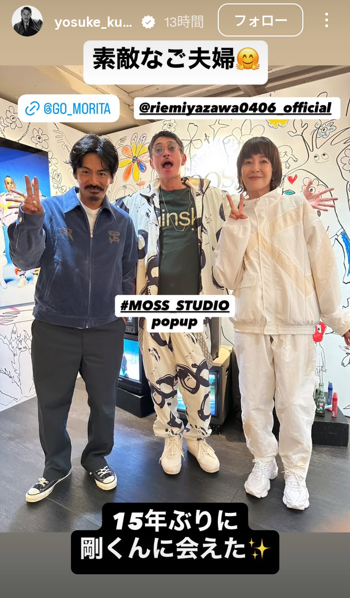 俳優・窪塚洋介のインスタグラムのストーリーズに登場した。宮沢と森田が所属する事務所「MOSS」によるデザインスタジオ「MOSS STUDIO」が、11日から初のポップアップストアを出店しており、窪塚が訪れた。