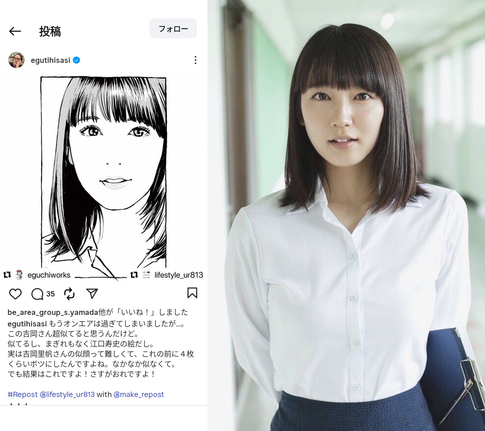 【悲報】江口寿史さん「吉岡里帆を上手く描けた!さすが俺!」→なぞり絵だったと判明