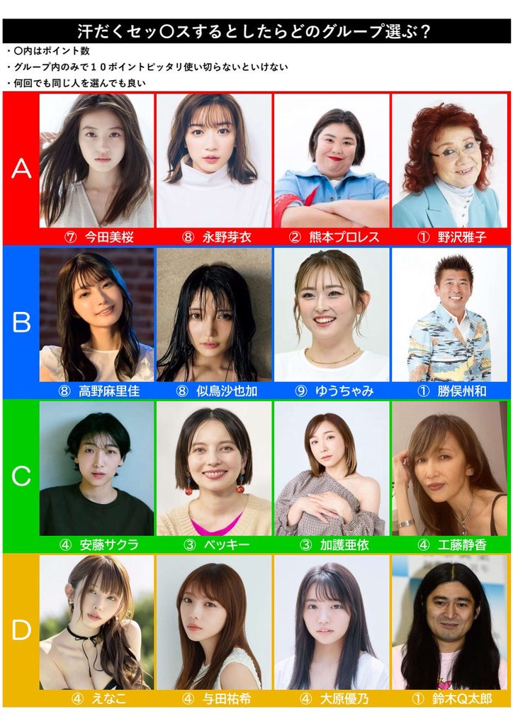 【画像】この中で汗だくセ◯クスするとしたらどのグループを選ぶ?