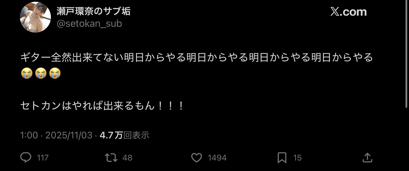 【悲報】国民的セクシー女優•瀬戸環奈、40万円のギターを買ったのに練習をサボるwwwwww