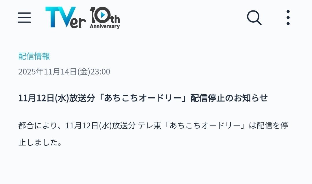 TVerのあちこちオードリー、先週の放送分が見れなくなってるな。何かあった?