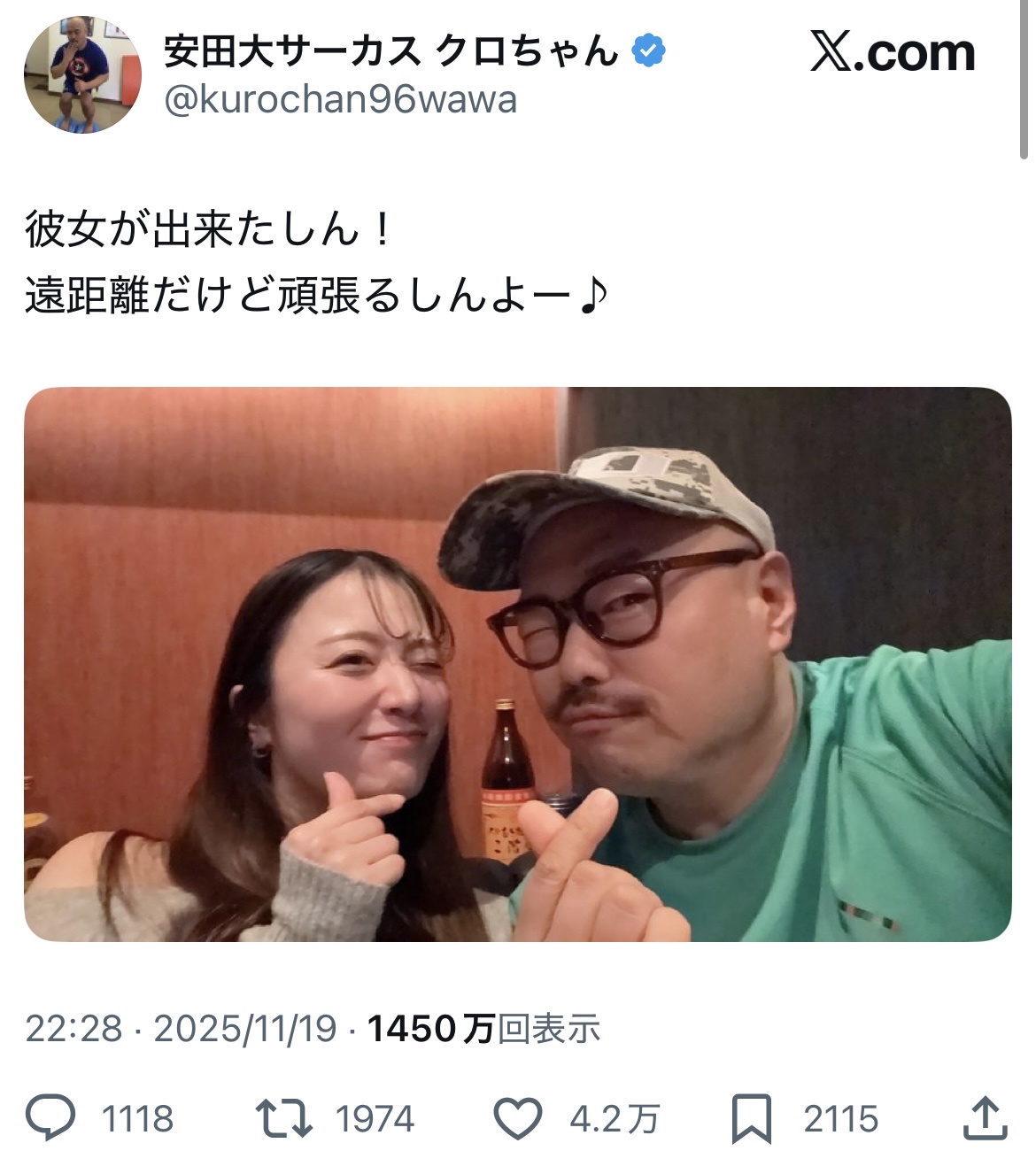 安田大サーカスクロちゃん、彼女が出来るwwwww(画像あり)
