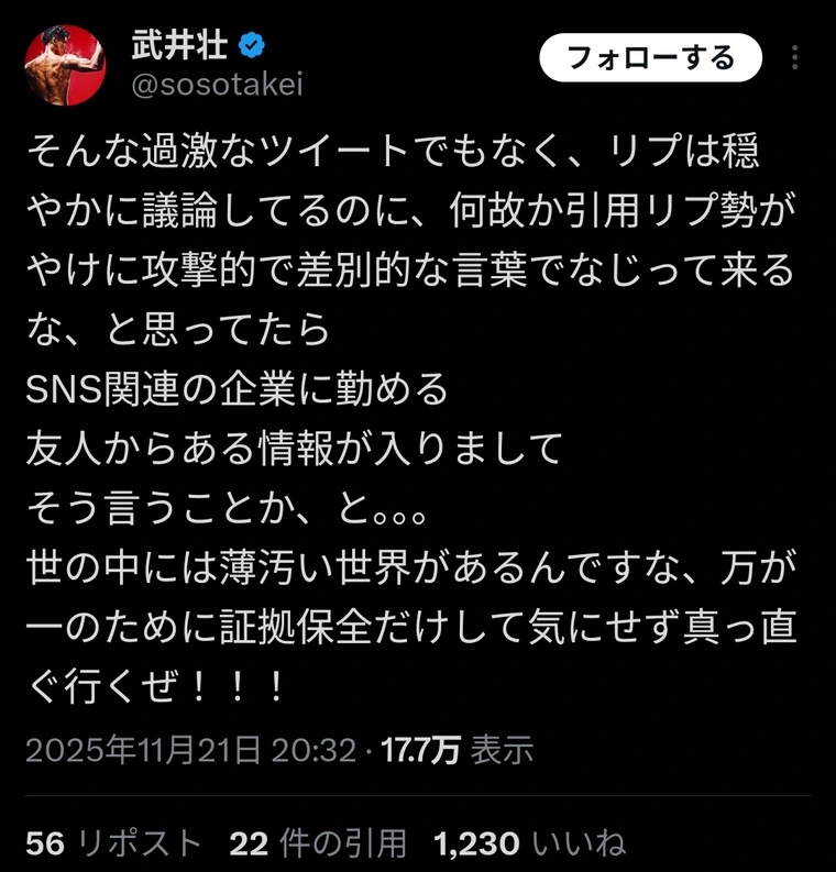 【朗報】武井壮、真実に氣づく「俺を叩いて炎上させようとしてる集団がいる」