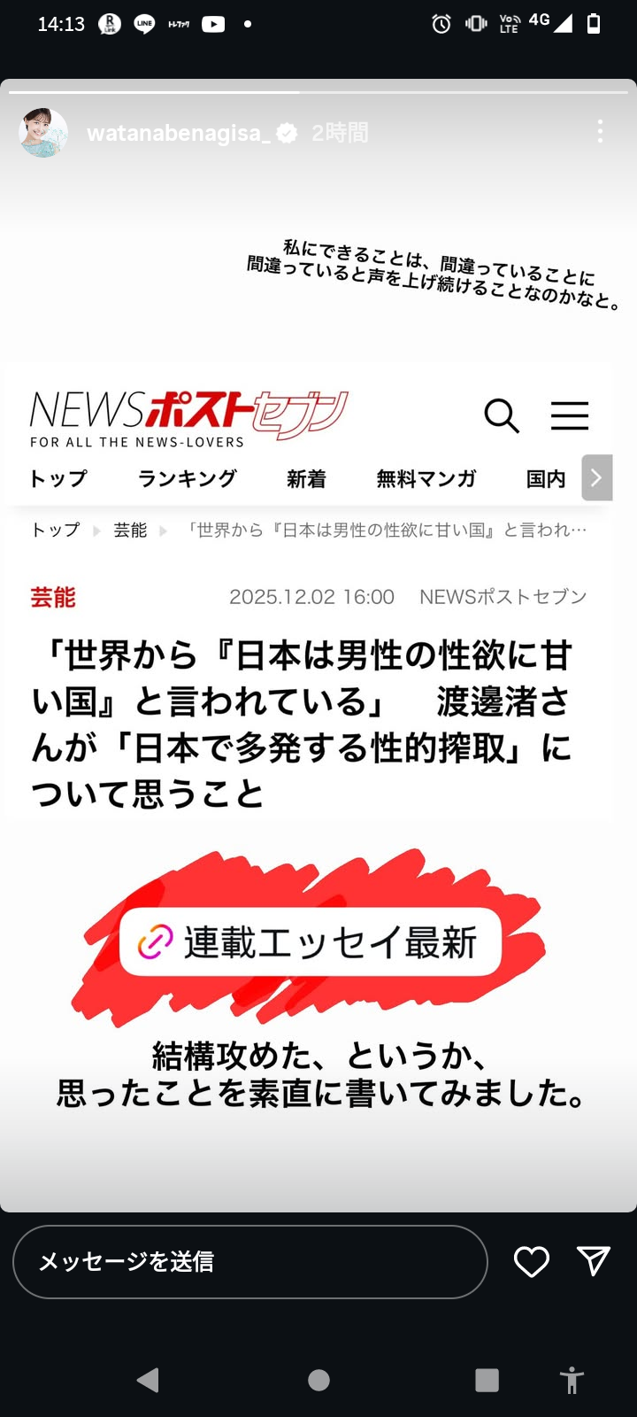 渡邊渚さん、フェミニスト活動開始wwwwwwwww