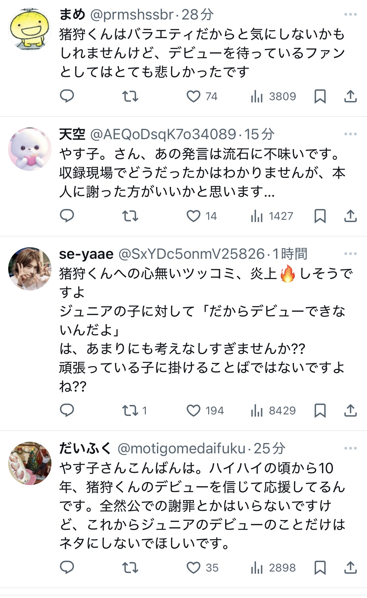 ジャニーズJrに心無い言葉を放ってファンががブチ切れ