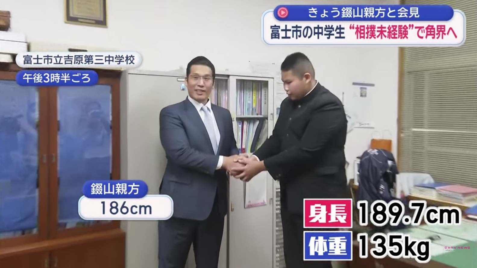 大相撲錣山部屋に富士市立吉原第三中3年生が入門へ 4月巡業観戦巨漢中学生を親方がその場でスカウト