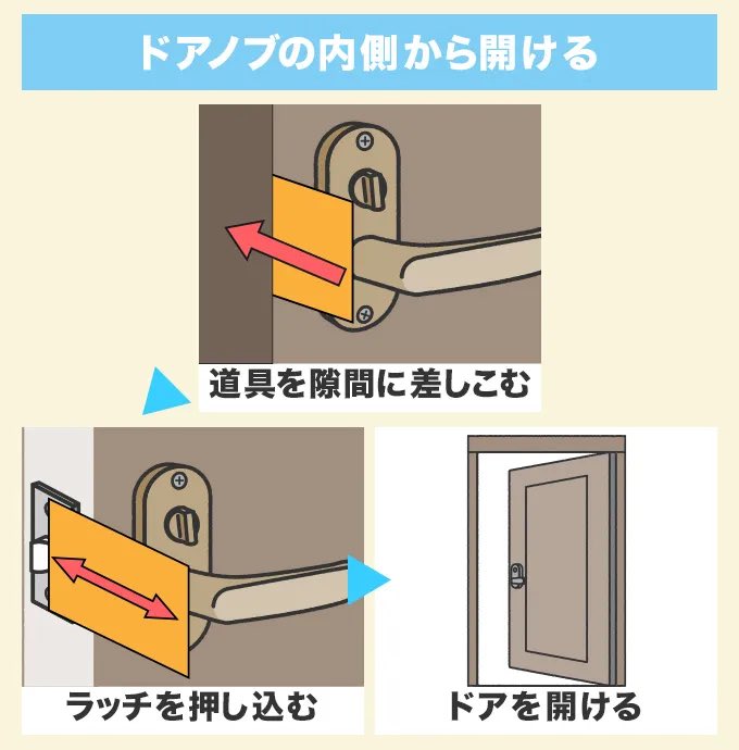 +のスレでドアノブの構造について詳しく書かれていたが、ラッチを通す角芯が外側に飛び出ている状態だったようだから、温度計を破壊して材料探すなら角芯に変わる物をドアノブに通して回すのが良いのかな。とても難しいと思うけどw