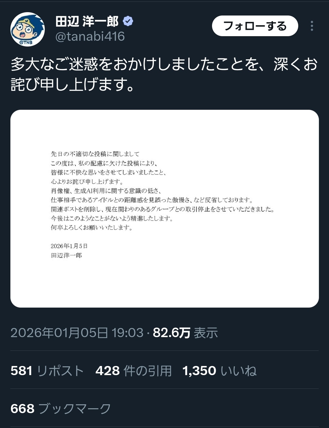 AKBメンバーの脱ぎコラをgrokで作成し本人に送りつけた漫画家さん、何が悪いとイキるも取引停止になる