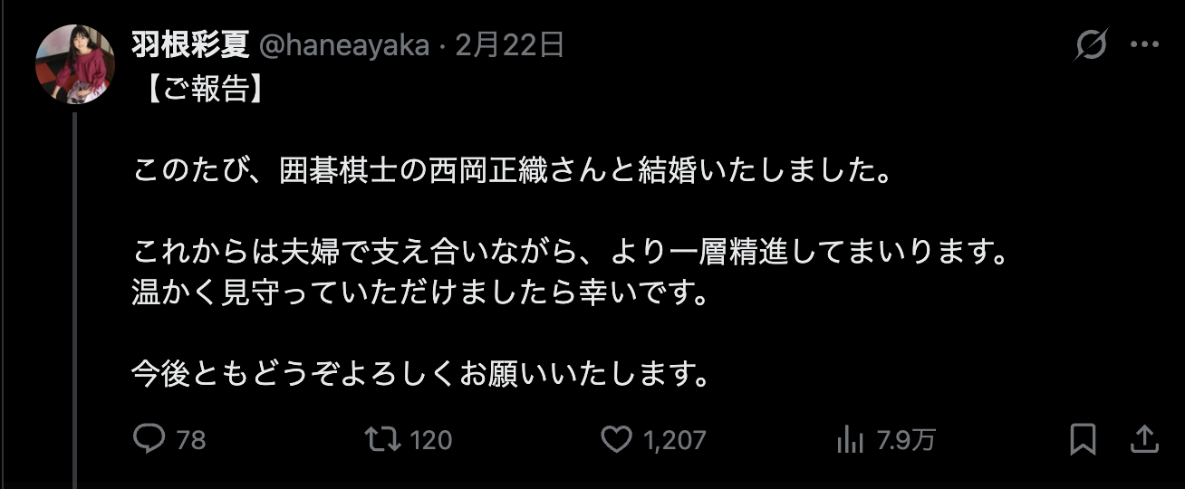 【悲報】囲碁の女さん、結婚が早すぎるwwwwwwwwwww(画像あり)