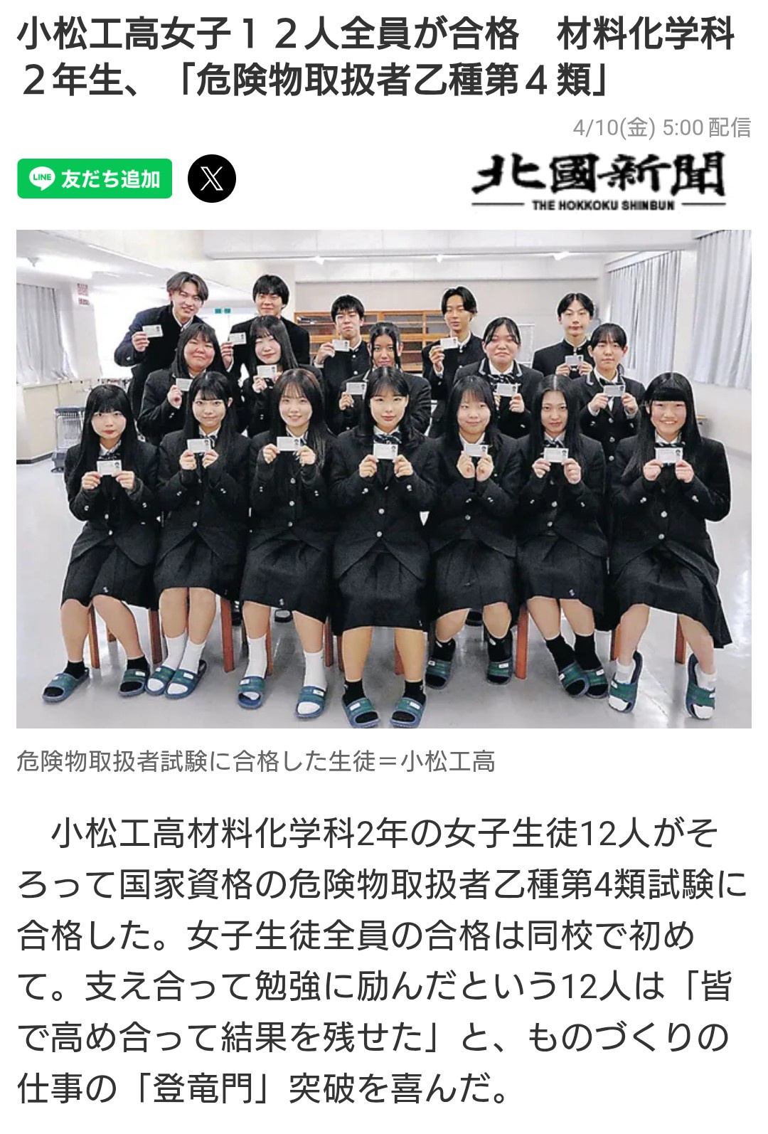 工業高校のJKさん、難関国家資格の危険物乙四に全員合格してしまう