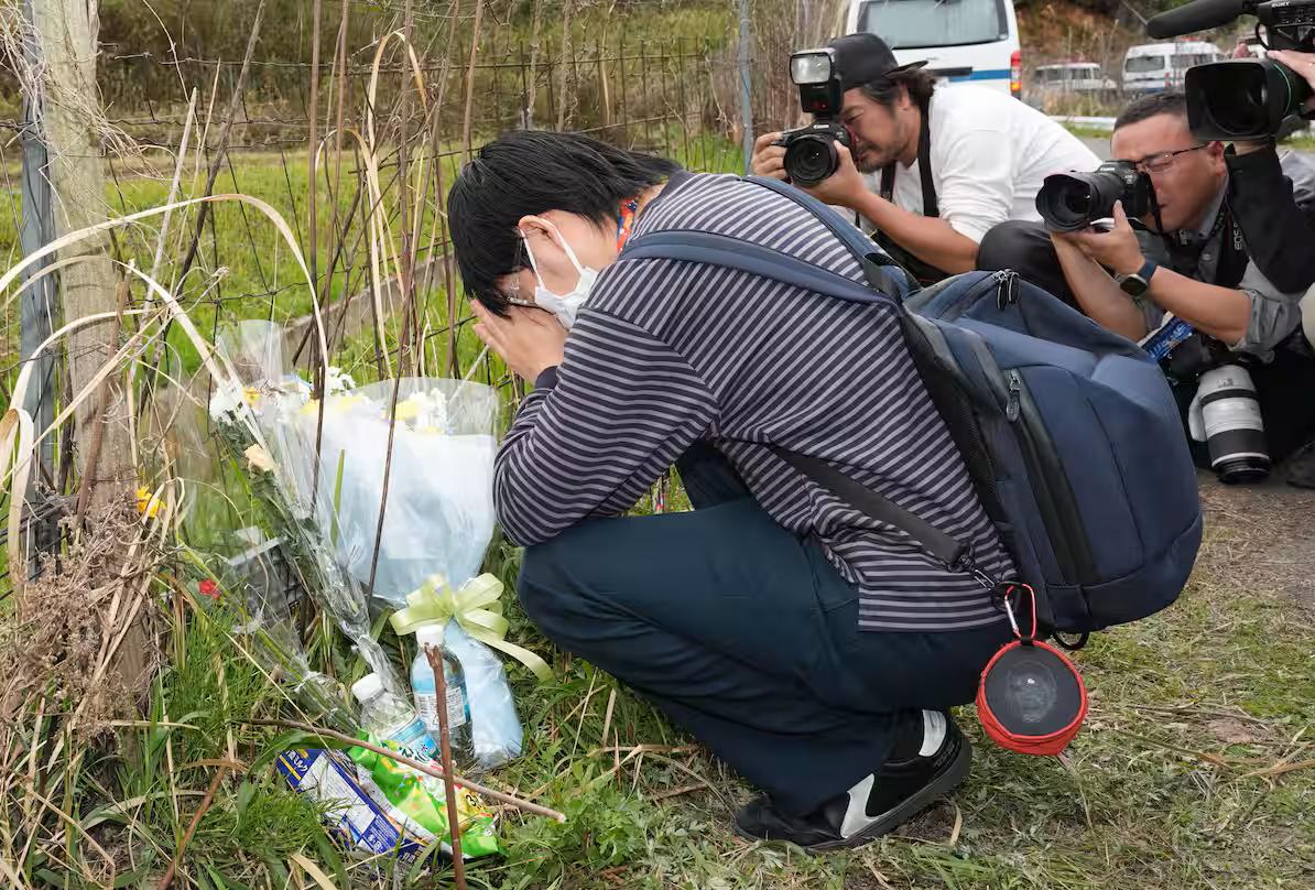 【画像】安達くんの遺体発見現場、謎のメガネ🤓が献花に訪れる
