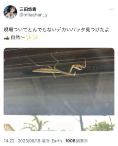 【画像】グラビアアイドル「とんでもなくでかいバッタがいた」新着!!