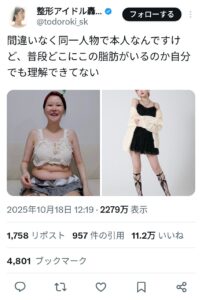 元国民的アイドルの人気メン(28歳)さん、SNSにきわどすぎる自撮りを投稿しBAN寸前 1: (5級) 2025/05/08(木) 22:00:28.54 和田海佑 (NMB48) @MYUMYU_48 (2025/05 […]